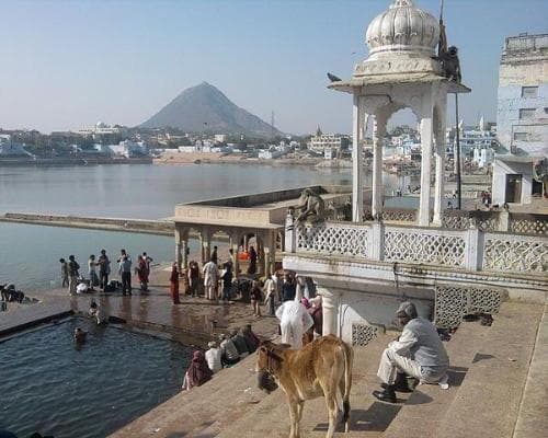 Have a final taste of rural village life over a traditional lunch before travelling to Pushkar, often called Tirth Raj or the king of pilgrim centres. Cruise through Ajmer and over Snake Mountain to Pushkar — the site of the world’s only temple to the Hindu god of creation, Brahma. After settling into your accommodation, get your bearings on an orientation walk around the colourful city with cascading architecture and capture a group photo on the lake.